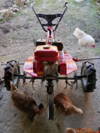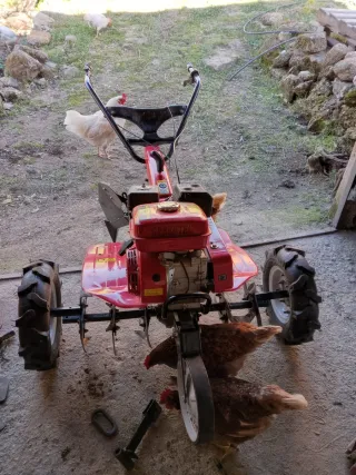 Mula mecánica motoazada TM 500 G2R en color rojo. Ideal para trabajos en huertos y jardines. Está nueva. Muy poco usada. Todavía conservo factura. La tengo en un pueblo cerca de Plasencia. Precio no negociable. - Diseño robusto. - Ruedas todoterreno.