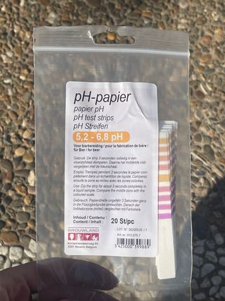 tiras medidoras de pH Brouwland con un rango de medición de 5,2 a 6,8 pH. Tambien tenemos de 1 a 12 pH y de 3,8 a 5,3 pH. diseñadas específicamente para la elaboración de cerveza. El paquete contiene 20 tiras con una escala de color incorporada para una fácil lectura visual. SE VENDE INDIVIDUAL A 4€ SE VENDE PACK 20 BOLSAS (400 tiras) A 50€ SE VENDE PACK 50 BOLSAS (1000 tiras) A 120€ Tiras de papel pH para la fabricación de cerveza. - Contiene 20 tiras por paquete. - Fabricado por Brouwland en Bélgica.