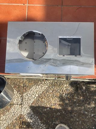 Se venden siete carros apilables de acero inoxidable con tres baldas. Son ideales para almacenamiento y transporte en entornos profesionales. - Medidas: 118 cm de alto x 66 cm de ancho y más de 1 metros de largo. - Material: Acero inoxidable. 215€ unid (la última foto es un carro más pequeño también de a/inox, solo una unidad) También podría servir para herreros, hay muchísimos kilos de acero! NO NEGOCIABLE