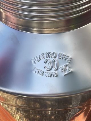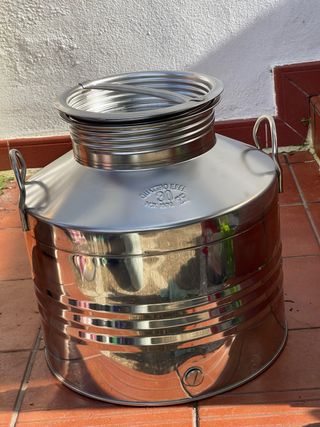 Práctica lechera de acero inoxidable de la marca Quattro Effe. - Capacidad de 30 litros. - Fabricada en acero inoxidable. - Diseño con asas para facilitar su transporte. - Cierre hermético en la tapa.