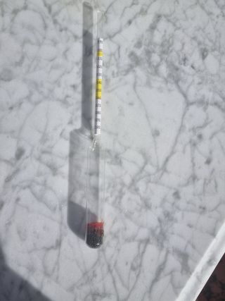 Densímetro Ferrari para medir la densidad de líquidos. herramienta imprescindible para el control de la fermentación en elaboraciones caseras y profesionales. La escala del densímetro cubre rangos de densidad desde 990 hasta 1100 DENSIMETRO INDIVIDUAL A 8€ 1 CAJA ( 9 DENSIMETROS ) A 45€ Se vende o individual o por número de cajas - Cuerpo de vidrio. - Escala graduada.