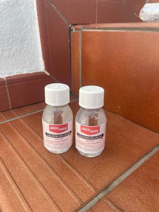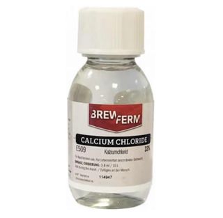 Líquido de cloruro de calcio Brewferm. Marca Brewferm Cloruro de calcio líquido, 100 ml, solución al 33 % (cloruro de calcio para el ámbito alimentario) E509 INDIVIDUAL: 5€ PACK 5: 17€ PACK 10: 35€ - Contenido: 100 ml. - Concentración: 33%. - Uso: para elaboración de cerveza. - Dosificación: 3-8 ml por cada 10 L.