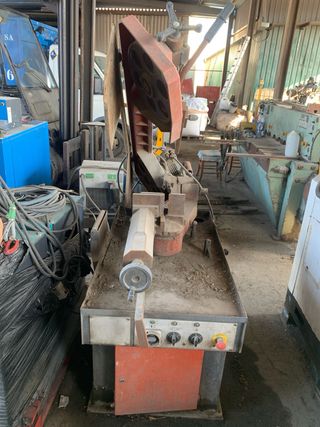 Sierra de cinta manual MACC 315. CON AVERÍA SE LE SALIA LA HOJA DE SIERRA Y LE FALTA LA BOMBA DE LA TALADRINA AÑO 2.000 y TIENE MARCADO CE - Modelo: 315 - Tipo: Sierra de cinta manual - Marca: MACC