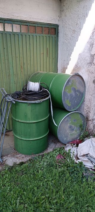 Bidones metálicos de 225 litros con tapa metálica, y cierre de seguridad con cierre metálico y goma, hay 14 sin estrenar y 8 usados. Se vende el lote completo, no se hacen envíos.
