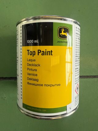 Lata de pintura amarilla John Deere. - Modelo: Top Paint. - Capacidad: 1000 mL.