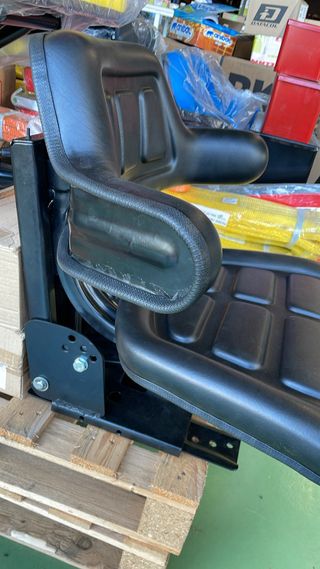 Asiento de tractor universal en color negro. Diseñado para ofrecer comodidad y durabilidad. Tela en pvc negro con amortiguación regulable. - Material: Polipiel. - Diseño ergonómico con reposabrazos.
