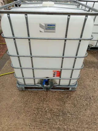 Depósito limpio de 1000 litros con estructura metálica. El tapon y la llave cierran bien, no pierde nada de agua - Marca: Schutz. -Se puede negociar transporte.