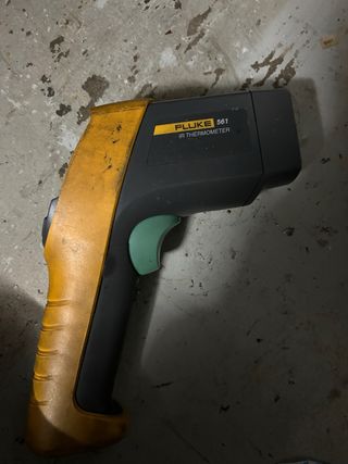 Termómetro infrarrojo Fluke 561. - Diseño ergonómico en amarillo y negro. - Gatillo de activación verde. - Pantalla digital.