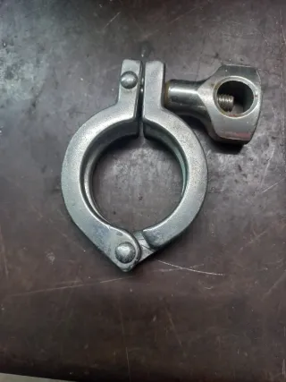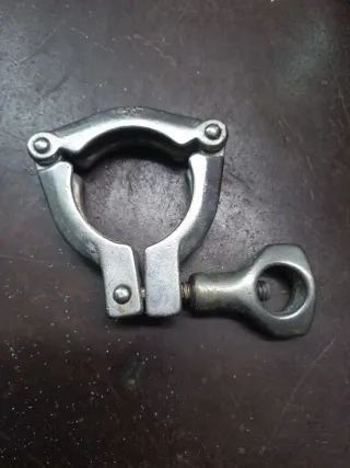 Abrazaderas de acero inoxidable y juntas de goma para uso en la industria alimentaria. Diseñada para asegurar conexiones fiables. - Material: Acero Inoxidable (INOX). - Tipo: Abrazadera de sujeción.