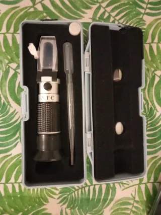 Este refractómetro portátil es ideal para medir la concentración de azúcar en la miel. - Diseño compacto y ligero. - Fácil de usar y transportar.