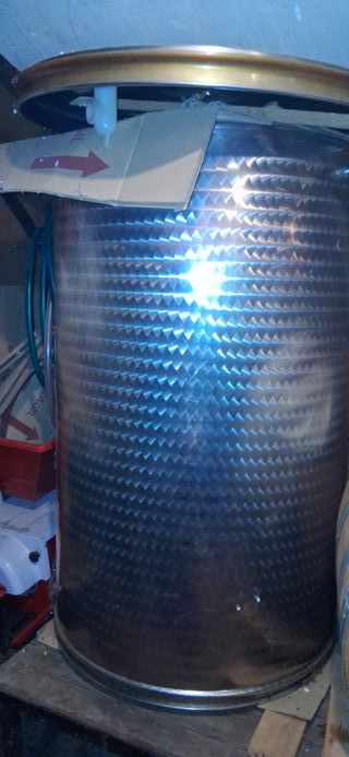 Tanque cilíndrico de acero inoxidable con acabado texturizado. Precio Negociar - Material: Acero inoxidable. - Diseño: Cilíndrico. - Acabado: Texturizado.