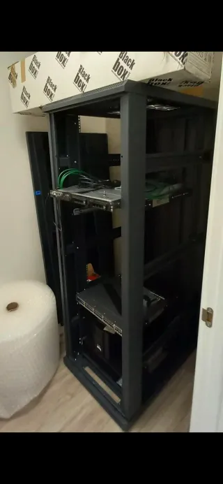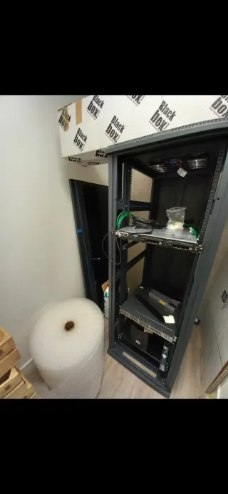 Estantería metálica para rack de servidores. No se envía, hay que venir aquí, desmontarla y llevarla - Estructura robusta de color negro. - Puertas cristal oscuras - Múltiples niveles para equipos. - Ideal para organizar cableado y componentes.