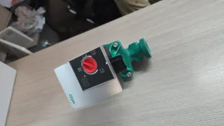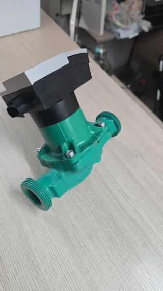 Bomba de circulación de la marca Wilo. - Color verde y plateado. - Con dial rojo y pantalla digital.