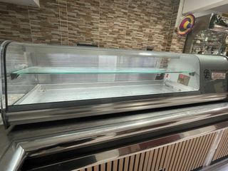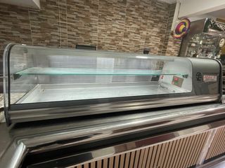 Vitrina expositora con superficie de cristal y estante interior. - Diseño moderno y elegante. - Acabado en acero inoxidable. - Panel de control digital.