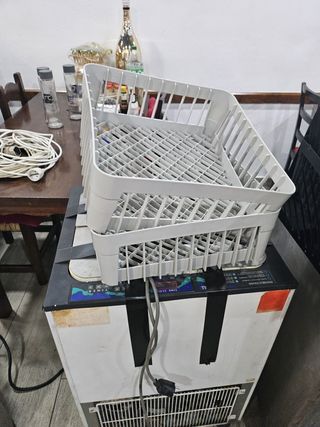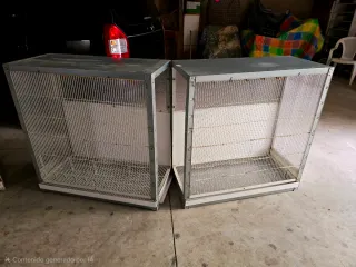 Se venden dos jaulas metálicas, ideales para pájaros o animales pequeños. Son robustas y están listas para su uso. grande y se unen por la mitad las medidas es de cada una... 90 cm largo 40cm profundidad 93cm alto - Estructura de metal. - Rejas de alambre. - Base de plástico. - Paneles laterales de plástico blanco.