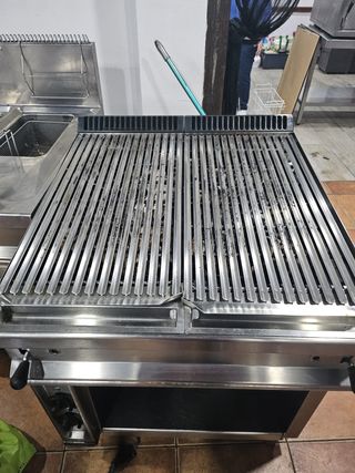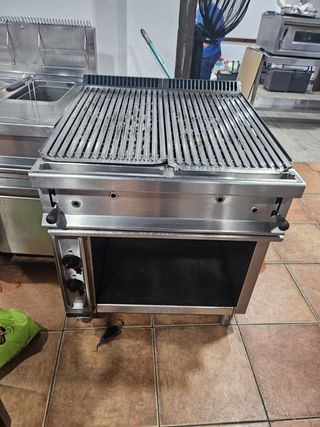 Brasa industrial de piedra carbónica, ideal para hostelería. - Fabricada en acero inoxidable. - Superficie de parrilla amplia. - Compartimento inferior abierto.