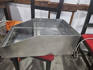 Equipo profesional de acero inoxidable para tamizar harina u otros ingredientes. - Construcción robusta en acero inoxidable. - Diseño con malla fina para un tamizado preciso. - Superficie inclinada para facilitar el flujo del producto.