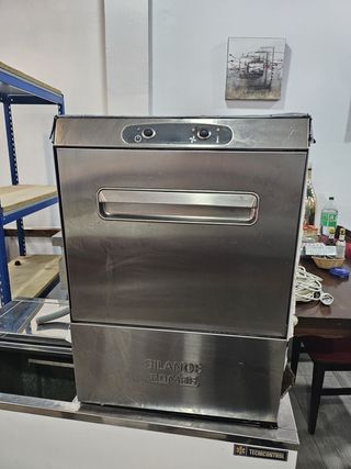 Lavavajillas industrial de la marca Silanos. - Fabricado en acero inoxidable. - Panel de control con botones. - Tirador frontal para apertura. -2 Cesta para los vasos.