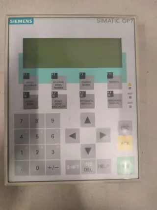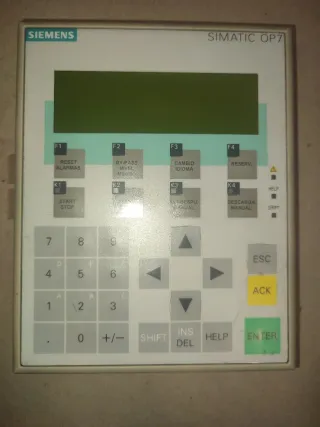 Panel de operador SIEMENS SIMATIC OP7. - Modelo: 6AV3 607-1JC20-0AX1 - Pantalla verde - Teclado numérico y de funciones..