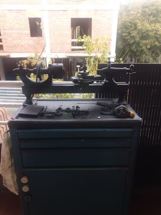 Torno de sobremesa antiguo de 1886 esta numerado se vende lo que se ve desconozco si falta alguna pieza 60x15x27 para decoración , pieza de museo o restauración, hierro,forja,herramienta,antigüedades