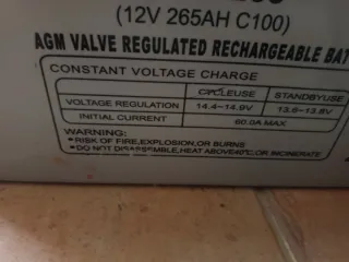 Batería recargable Durasolar AGM, modelo 6-FM-265. - Voltaje: 12V. - Capacidad: 265Ah (C100). - Tipo: AGM Válvula Regulada. - No derramable.