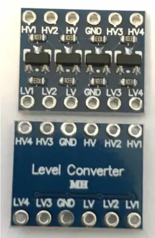 Lote 20 Placas convertidoras de nivel lógico MH para electrónica. - Múltiples pines de entrada y salida HV y LV. - Pines GND disponibles. - Diseño compacto.