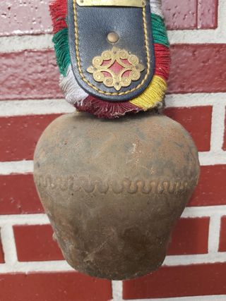 Cencerro o campano de Suiza, con campano en latón y cinturón con escarapela multicolor, viene con detalles en latón, por limpiar, en buen estado. Hago envíos con wallapop solo con Correos NO ENVÍO CON INPOST
