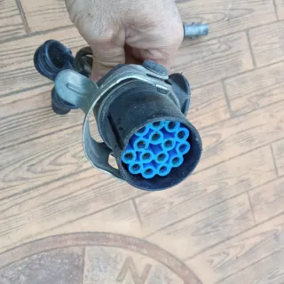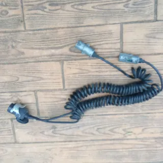 Manguera espiral para camión, ideal para conexiones eléctricas. - Cable en espiral. - Conectores metálicos. - una de las conexiones está defectuoso por aplastamiento - Cableado funciona correctamente. - Salida doble - Volvo Scania Mercedes Renault DAF Man - 24 v.