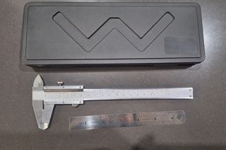 Calibrador, Pie de Rey, Margen de error 0,02, viene en su caja con u a Regla de medición, como nuevo.