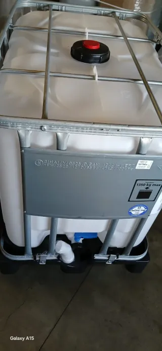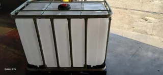 Contenedor de gran capacidad para líquidos. - Capacidad de 600 litros. - Estructura metálica de protección. - Fabricado en plástico blanco resistente. Medida: 1,20 x 80 x 1
