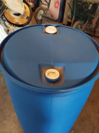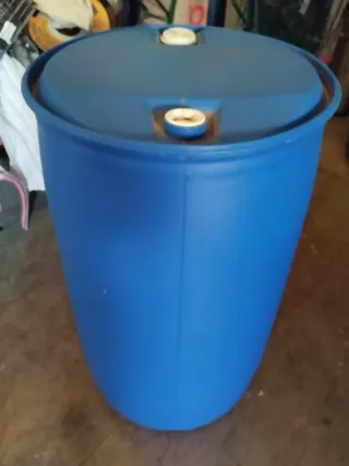 Barril de plástico azul con capacidad de 200 litros. - Material: Plástico resistente. - Color: Azul. - Capacidad: 200 litros.