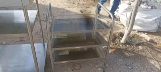 Conjunto de dos carros metálicos embutidos, ideales para almacenamiento o transporte. 150€ cada uno 250€ los dos - Fabricados en metal resistente acero inoxidable - Diseño embutido para optimizar espacio.