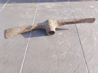 Herramienta antigua de metal, ideal para trabajos de excavación o jardinería. Medidas 58cm de largo. - Fabricado en metal resistente. - Diseño clásico de pico. - Presenta signos de óxido debido a su antigüedad.en buen estado.