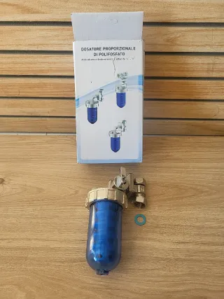 Dispensador de polifosfato Dianhydro con conexiones. Dispensador de polifosfato Dianhydro 1/2" ✨ Modelo: Conexiones BY Pass 🛠️ Material: Latón y plástico 📏 Conexión: 1/2"x1/2" 🌡️ Temperatura: Máximo 45°C 🌊 Presión: Máximo 8bar 📦 Peso: 1.2kg - Incluye conexiones para su instalación. - Diseño transparente para ver el contenido. E955375