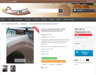 Precio rollo 50 metros 242€+iva= 292€ Manguera para sembradoras neumáticas, diámetro interior 30mm, rollo de 50m, aunque es la manguera fabricada para sembradora neumática Solá, también sirve para otras marcas del mercado como Gil, Aguirre o Solano Horizonte. Precio: 240.75€ + iva= 291.31€. Sale a 4.82€+iva= 5.82€ metro comprando en rollos de 50 metros. Tambien disponible por metros al corte. Se hacen envios comprando en nuestra web no inclidos en el precio. Más información solo por teléfono 978040004 o en la web Agroindustrialmartin.com