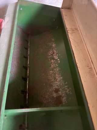 Sembradora marca Gil en buen estado. Teléfono de contacto 636916006 - Color verde. - Ruedas. - Mecanismo de siembra visible.