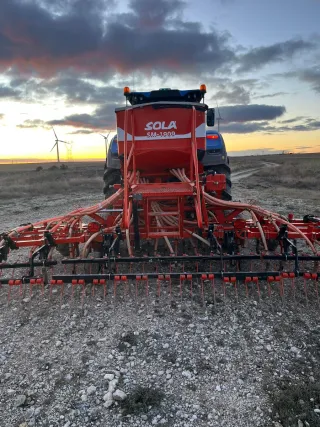 Sembradora de cereal marca Sola, modelo SM 1909 de 6m de siembra directa en reja. Tolva 2000L. año 2013. Turbina hidraulica. 4filas. Tengo los rulos y los marcadores de passada pero no estan montados ahora mismo. tengo vario recanvio de la maquina. Funciona todo bien!