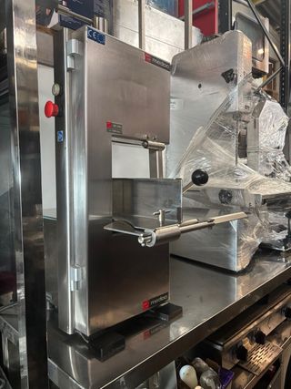 Sierra profesional para cortar hueso y carne congelada. Ideal para carnicerías y cocinas industriales. - Construcción robusta en acero inoxidable. - Diseño compacto y fácil de limpiar. - Incluye guía de corte ajustable. - su precio nueva es de 1250