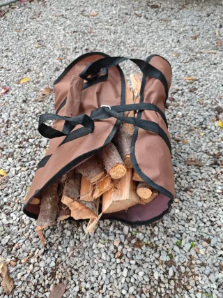 Práctica bolsa de transporte para leña, ideal para llevarla cómodamente. Fabricada en material resistente y con asas para facilitar su agarre. Tela Oxford. - 2 unidades disponibles de color diferente. (Precio por unidad) - Color marrón y color negra - Asas negras. Medidas: 99X48cm NB: SE VENDE SIN LA MADERA!