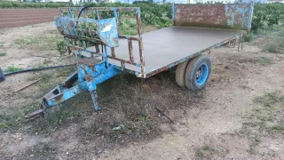 Remolque de tractor con capacidad para 6 palets, ideal para campaña de naranja, caqui, verduras y hortalizas u otras cargas. Un remolque agrícola muy robusto que actualmente se encuentra en desuso, fabricado para durar, con componentes de alta resistencia. Necesita puesta a punto. Características principales: Eje de camión y suspensión por ballestas: Máxima estabilidad y gran capacidad de carga, mucho más resistente que los remolques agrícolas convencionales. Freno hidráulico: Dispone de freno hidráulico, lo cual es vital para la seguridad en desniveles dentro de la finca. Estado: Sin Papeles (Finca Privada)