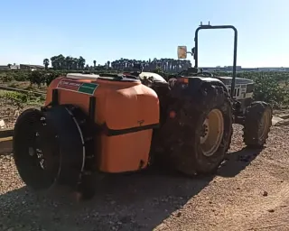 Atomizador turbo con depósito de 400 litros para aplicar productos fitosanitarios, con depósito de agua limpia lavamanos. Actualmente se encuentra con el ventilador desmontado y la bomba de presión rota para sustituir o reparar. Ideal para acoplar una bomba ilemo, comet o similar. Se puede ver en las imágenes como aplicaba producto fitosanitario con tractor. Especial para manitas o entendido en el tema, se le añadieron luces y maneta de presión de latón de mañez y lozano. Solo habría que poner una bomba nueva y un poco de limpieza, ya que lleva meses parado y sin uso. Ideal para Manitas.