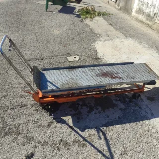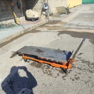 Carro hidráulico con capacidad de carga de hasta 150 kg. Ideal para mover objetos pesados. - Plataforma metálica. - Ruedas para facilitar el desplazamiento. - Mango para maniobrar.