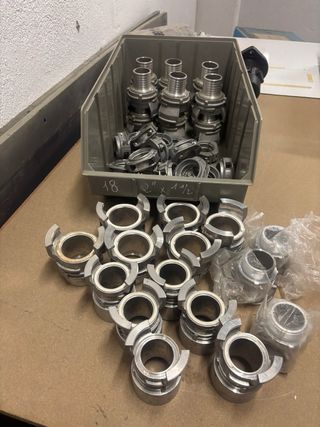 Racores Guillemin,45 rosca int 1 1/2,rosca hembra 1 1/2 y de 2”,12 Espigas para manguera y 20 bridas reforzadas