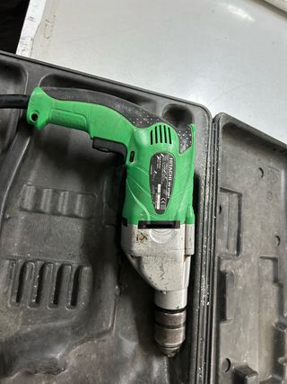 Taladro Hitachi con maletín de transporte, regulación electrónica más 2 velocidades inversor de giro y percutor.