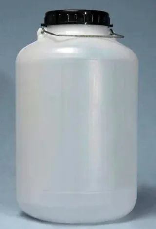 Bidón de plástico con capacidad de 5 litros, apto para uso alimentario. Ideal para almacenar líquidos. - Material: Plástico. - Capacidad: 5 litros. - Cierre: Tapón de rosca negro. Con sobre tapón antivuelco. Envío inmediato
