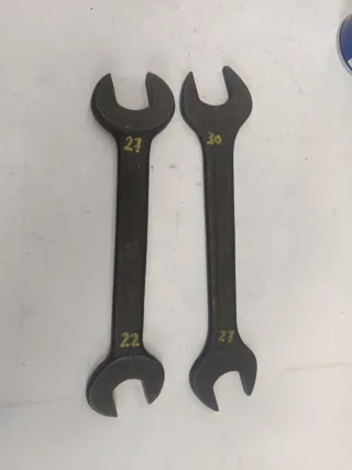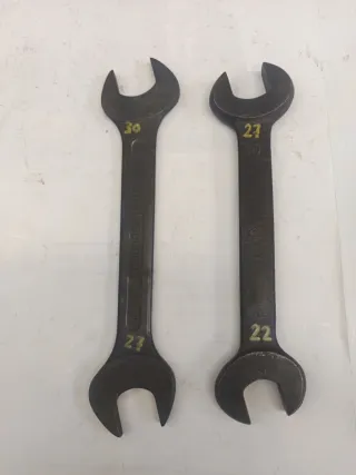 Se vende lote de dos llaves de boca reforzada. - 1 de 22 mm. a 27 mm. - 1 de 27 mm. a 30 mm. - Fabricación robusta. - Marcaje de medidas en amarillo.