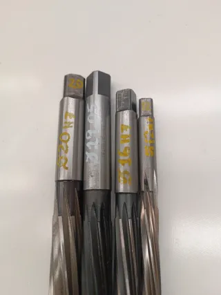Conjunto de cuatro escariadores manuales. - Escariador 20 H7 - Escariador 19,05 - Escariador 16 H7 - Escariador 12 H7