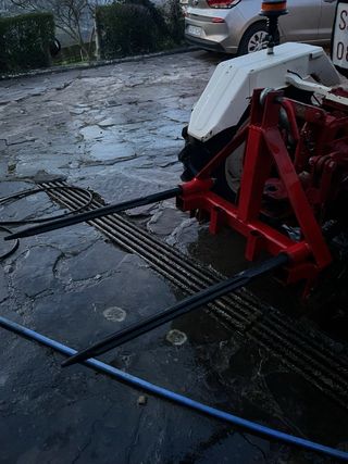 Puas para carga de pacas, diseñadas para tractores. - Estructura robusta de metal. - Color rojo y negro.