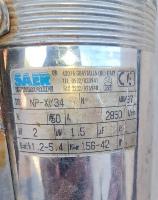 Bomba sumergible BigMat modelo WP55001. - Voltaje: 230V-50Hz - Potencia: 550W - Altura máxima bombeo: 7 m - Caudal máximo: 11000 L/h - Temperatura máxima del agua: 35°C - Diámetro máximo de partículas: 35mm - Protección IPX8 Aparentemente como nueva, pero no sé si funciona, no la he probado, por eso vendo como para reparar.