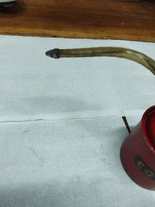 Pincho metálico para fijar goma de riego por goteo. Echo a mano. - Mango en forma de T para facilitar el giro. - Punta afilada para clavar en la goma. - Varilla con textura helicoidal.